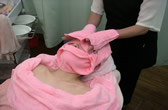 | 16アロマスチームをあてます | 17スポンジで拭き取り | 18蒸しタオルで拭き取り |