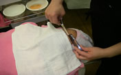 | 4汚れを拭き取ります | 5ラザーリング | 6蒸しタオルでうぶ毛を蒸して |