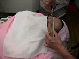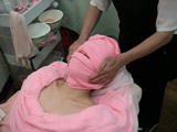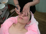 | 13眉カット | 14蒸しタオルで拭き取り | 15頭部のマッサージ |
