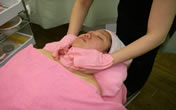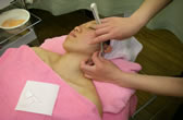 ダブルクレンジング(ハンド、ブラシを使います・吸引・ハンドマッサージ・お肌の状態に合わせたマスク・襟そり・ハンドでクレンジング・お顔剃り・アロマスチーム・耳のうぶ毛そり・眉そり・眉カット・整肌・デコルテのシェービング・ブラ線までの背中のシェービング・肩のマッサージ和装シェービング(70分) ¥8000 ⇒
